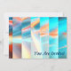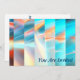 Une représentation colorée et très abstraite d'un coucher de soleil. Les couleurs vont du bleu du ciel au jaune du soleil, en passant par l'orange et le rouge des nuages à l'horizon.