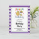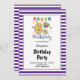 Invitation Bandes violettes/blanches encadrées 6e fête d'anni