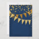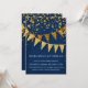 Élégant. Moderne. Chic. Glamour discret - avec des banderoles pennant scintillantes en deux nuances de doré pailleté avec des confettis tombants scintillants de différentes tailles et nuances d'or. Des étoiles brillantes en forme d'explosion stellaire mettent en valeur l'éclat. Une mise en page de texte typographique très contemporaine qui n'a rien de traditionnel. C'est simple et court. Cela dit à vos invités : "Nous organisons une fête et ce sera la fête d'une vie !" Pour la mariée et le marié élégants mais non traditionnels. COULEURS : bleu saphir royal cobalt foncé et or, paillettes dorées. Particulièrement adapté pour les mariages d'automne ou d'hiver, les soirées du Nouvel An, les fêtes d'anniversaire et les annonces de fête d'anniversaire
