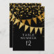 Numéros de table pour réceptions, soirées de gala, événements d'entreprise et douches nuptiales. Élégant. Moderne. Chic. Glamour discret - avec des banderoles pennants scintillantes en deux nuances de paillettes dorées avec des confettis tombants scintillants et clignotants de différentes tailles et nuances dorées. Des étoiles brillantes en explosion d'étoiles mettent en valeur l'éclat. Une mise en page de texte à la typographie très contemporaine qui est tout sauf traditionnelle. C'est simple et court. Cela dit à vos invités : "Nous organisons une fête et ce sera la fête d'une vie !" Pour la mariée et le marié élégants mais non traditionnels. COULEURS : noir de jais et or, paillettes dorées. Particulièrement adapté pour les mariages d'automne ou d'hiver, les soir