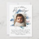 Célébrez ce moment si spécial avec la photo de l'enfant accompagnée d'un magnifique design bleu.