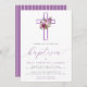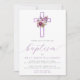 Invitation Baptême bébé croix florale violette