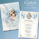 Avec une belle invitation Baptême Christening conçue sur mesure avec la Vierge Marie et le Bébé Jésus sur un arrière - plan floral bleu. Tout le texte et les polices peuvent être modifiés.