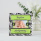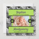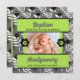 Couleurs vives de la paire verte avec gris, blanc et noir dans un style rétro à motif floral pour créer une belle façon pour les parents à la famille invitation et les amis au Baptême de leur beau bébé garçon ou fille.