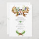 Invitation de baptême de couple tendance de la forêt sauvage avec des bouquets peints à la main à l'aquarelle avec des baies forestières - myrtilles, mûres et brindilles, pommes de pin, fougères, plumes et bois de cerf.