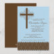Notre belle invitation au baptême de croix bleues ou à la baptême d’un garçon, présente une délicate croix brune avec une bordure en dentelle marron sur un arrière - plan bleu clair. Notre invitation comporte une impression recto verso avec un dos marron assorti. Visitez notre boutique pour cette invitation dans une large sélection de couleurs modernes et tendance et pour voir notre sélection d'invitations religieuses pour les garçons, y compris des invitations à la communion.