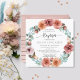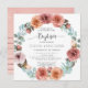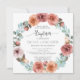 Invitation Baptême de fille unique, couronne Rose de fleurs d