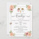 Célébrez le baptême de vos jumeaux avec cette invitation religieuse. Deux petits anges — un garçon et une fille — et de jolies fleurs roses y figurent.