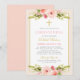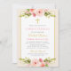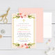Invitation Baptême Fille Fleurs Rose Élégant Or