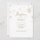 Invitation Baptême Flocons de Neige Dorés