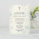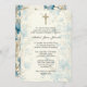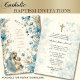 Avec une belle invitation Baptismal Christening conçue sur mesure avec une bordure florale bleu azur, la Bienheureuse Vierge Marie tenant Jésus et un verset d'écriture sur le devant. Tout le texte et les polices peuvent être modifiés.
