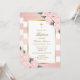 Elégante invitation au baptême floral rose vif avec une croix d'or et un cadre orné de roses blush et souffle de bébé.