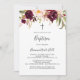 Cette invitation au baptême fleuri et boho rustique est parfaite pour un baptême ou un baptême de bébé moderne. Le design se compose de pivoines d'aquarelle rose, violet, rouge et bordeaux regroupées en bouquets élégants avec feuillage vert, inspirant beauté naturelle.