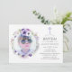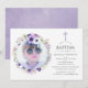 Invitation Baptême floral violet poussiéreux