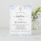Invitation Baptême garçon bleu blanc croix d'or luxe
