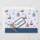 Carte d'invitation au baptême sur le thème nautique avec voiliers, crabes et ancres avec un arc et une étiquette en forme de fil 3D.
