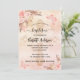 Un arrière - plan doré rose, rose rousse, dégradé rustique . Décoré de fleurs roses d'or et de rose, de roses, d'herbe de pampas, de papillons et d'une croix dorée. Une grande croix dorée au fond comme filigrane. Personnalisez et ajoutez un nom et les détails.