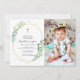 Design est composé de sans serif et de typographie cursive joueuse sur un arrière - plan blanc rempli de cadres géométriques en faux or et de plantes vertes feuillues botaniques. Une simple fausse croix d'or orne le centre. Ajoutez une photo personnalisée. Disponible ici : http://www.zazzle.com/store/selectpartysupplies