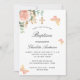 Un arrière - plan blanc décoré de verdure d'eucalyptus, d'or rose et de rose rose rousse, de feuilles dorés et de papillons. Personnalisez et le nom des enfants et les détails de la cérémonie.