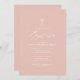 Invitation Baptême simple élégante de croix rose pâle