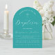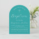 Invitation Baptême Turquoise Arc Croix et Script Garçon Chris