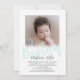 Invitation minimaliste de baptême dedans avec le baptême écrit dans un manuscrit vert en bon état de brosse. Personnalisez avec une photo de votre bébé. Le dos comporte un motif vert en bon état de plaid.