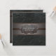 Belle invitation de Bar Mitzvah en cuir noir rustique imprimé marron et noir.