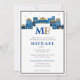 L'invitation Bar Mitzvah Joyeuse de Jérusalem Contemporain colorée présente une image de la ville de Jérusalem en haut dans un thème bleu et or avec un nom en hébreu