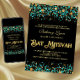 Invitation Bat Mitzvah avec confettis pailletés turquoise et or. Cette belle invitation Bat Mitzvah turquoise et or est facilement personnalisable pour votre événement en ajoutant vos coordonnées dans le style de police et la couleur de votre choix. Vous pouvez changer la couleur de fond de cette magnifique invitation Bat Mitzvah. Toutes les conceptions d'invitations sur Zazzle sont des graphiques imprimés sans vrais bijoux, rubans, paillettes, etc.