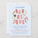Une invitation de fête barbeque d'été avec des gribouillages de barbeque.
