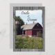 Invités Invitations à vos soirées thématiques de ranch rural avec la charmante Red Barn et Silo Mariage campagnard Invitation. Cet invitation de mariage rustique et personnalisé présente une photo pittoresque pittoresque d'une grange et d'un silo en bois rouge avec une bordure numérique patinée en bois de grange.
