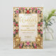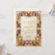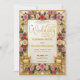 Set the tone for a timeless union with this ornate Baroque design. Featuring classic floral details and elegant typography for a sophisticated first impression.This design features a symmetrical composition anchored by a decorative geometric lattice frame in warm yellow-gold tones. The artwork mimics the look of a traditional illuminated manuscript, showcasing cherub angel illustrations and intricate heart flourishes amidst a border of blush pink roses and dusty rose florals. The typography utilizes an elegant handwritten calligraphy script for headlines, balanced by classic serif and clean sans serif fonts for details, all set against a soft ivory and cream background.This is a flat printed image with a faux gold foil effect, not actual raised foil or metallic material.