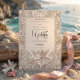 Set the tone for a timeless union with this romantic baroque design, featuring elegant scrollwork and soft dusty rose hues for a sophisticated spring event.This design captures the essence of the Romantic era through a sophisticated composition of classic motifs. The layout is framed by ornate acanthus leaf scrollwork rendered in a digital bas-relief style, creating the illusion of sculpted plaster or stone. At the crest, two graceful swans curve their necks to form a subtle heart shape, while the lower corner features a delicate cherub angel playing the violin, nestled among blooming roses and tulip buds. The color palette utilizes a soft, neutral cream background with accents of sage green and dusty rose to enhance the vintage aesthetic.This is a flat printed image with a faux embossed texture effect, not actual raised material or 3D carving.