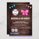 Éblouissez vos invités avec ce genre mignon révèle invitation avec un baseball et un arc rose avec typographie moderne contre un arrière - plan en bois de grange. Ajoutez simplement les détails de votre événement sur ce modèle facile à utiliser pour en faire une invitation unique.