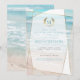 Invitation de fête de Bachelorette | Mariage de plage géométrique à monogramme moderne | Une touche moderne sur les invitations de mariage de plage - Mariage unique conçu pour la mariée pieds nus ™ par WhimsicalArtwork ™ comprend une forme géométrique de style terrarium décalé avec des transparences variables dans les facettes pour permettre au fond de la plage de l'océan tropical de se montrer à travers une variété de formes et d'intensités. Une approche ludique de la typographie dans le texte - avec les initiales des noms de la mariée et du marié entourées d'une couronne de laurier sur le dessus - en deux couleurs (sarcelle et or) - suivies de polices serif coordonnées en bleu vert grisâtre (repris de l'océan) sarcelle (repris des vagues de l'océan en arrière-plan) et lettrage doré. Les détails du mariage sont propres et simples sur le recto uniquement de l'invitation - un design de plage tropicale coordonné au verso. Tous les textes,