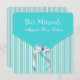 Turquoise bleu et blanc rayures Bat mitzvah invitations. Vous pouvez facilement customiser cette jolie invitation de Bat mitzvah bleu turquoise en ajoutant simplement vos détails dans le style de police et le libellé de votre choix.