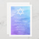 Invitations de Bat mitzvah moderne violet et bleu turquoise. Ce design est doté d'une aquarelle tendance avec une étoile de David. Personnalisez facilement votre événement spécial.