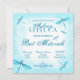 Invitation vos invités bat mitzvah avec des libellules turquoise poussiéreuses. Aquarelle texture turquoise avec parties scintillant Star of David sera belle avec invitations assorties, cartes rsvp, enveloppes, étiquettes et autocollants. Transférez facilement cette conception magique de libellules turquoise à d'autres cartes et cadeaux.