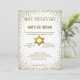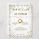 Une invitation Bat mitzvah violette avec un look de confettis or. Note : Il s'agit d'une reproduction graphique d'art d'Amelia Carrie et ne contient aucune parties scintillant désordonnée. zazzle.com/GlitterInvitations