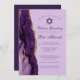 L'élégante agate violette et or orne le côté de cette jolie cérémonie de Bat mitzvah lavande et de l'invitation de la fête. Le nom de votre fille est écrit dans une belle écriture cursive sous l'Étoile de David. Un design moderne et tendance pour une juive chic appelée à la Torah.