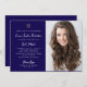Cette invitation Bat mitzvah juive simple et élégante, bleu foncé et blanc présente une typographie de style vintage et fantaisiste et une étoile d'or de David avec votre photo. Un style élégant, classique et minimaliste qui reste unique et tendance.
