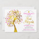 Invitation Bat mitzvah Pink Gold Foil Script Arbre de vie