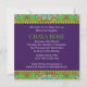 Beau art oriental Glamor inspiré Bat mitzvah invitation design coloré couleurs néon look. Cercle de points d'or et de perle pour afficher le nom, le nom de l'événement et la date à l'avant de la carte. Design moderne glamourous dans des couleurs vives funky vert, aqua, violet foncé et or. Le devant présente également une étoile de David derrière le texte, mélangé en douceur. (Vous pouvez supprimer ceci, si pas nécessaire - il suffit de cliquer sur l'option de PERSONNALISER pour la conception avec des options plus profondes). La conception continue à l'arrière avec de l'espace pour plus de texte avec des trims correspondants. ► Bien sûr, ce design conviendra aussi à tout type d'occasion et d'événements spéciaux, y compris la douche super de nuptiale, dîner mascarade, anniversaire psychédélique ou simplement un rendez-vous magique avec des personnes spéciales.