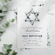 Invitation élégante pour célébration de mitzvah avec un fond blanc simple qui peut être changé en n'importe quelle couleur, une étoile de David florale aquarelle bleue, et un modèle de bat mitzvah moderne facile à personnaliser.