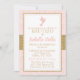 Cette invitation a un motif de parties scintillant faux entourant un cadre avec tout le texte personnalisable. Une jolie colombe rose orne le sommet.