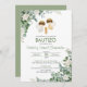 Célébrez le baptême de vos jumeaux avec cette mignonne invitation, avec des anges entourés de feuilles verts. Español / Espagnol : Celebra el Bautizo de tus hijos (twin) con esta invitacion.