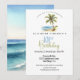 Celebrate an incredible milestone with a beautifully designed tropical beach birthday invitation that captures the relaxed elegance of a seaside celebration. Featuring a serene watercolor ocean scene with a graceful palm tree and soft coastal colors, this invitation creates the perfect atmosphere for honoring a remarkable 101st birthday surrounded by family and friends.