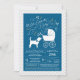 Inclure le grand frère ou le bébé à fourrure de soeur dans la fête avec cet adorable baby shower de chien Beagle! Parfait pour un amoureux du chiot avec un bébé en route. Le Beagle est à côté d'un adorable chariot vintage. Le bleu en fait un parfait endroit pour un bébé en route !