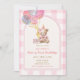 Invitation Bear Balloon Pink Gingham Beary First Birthday