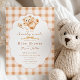 Celebrate the upcoming arrival with this adorable “We Can Bearly Wait” baby shower invitation. This charming design features a sweet watercolor teddy bear with a soft bow and pacifier, set against a warm neutral gingham background and framed with an elegant scalloped border. The cozy farmhouse-inspired style makes it perfect for a teddy bear theme baby shower, gender neutral baby shower, rustic baby shower, or classic nursery celebration. Easily personalize the text with your event details to create a beautiful invitation that friends and family will love.